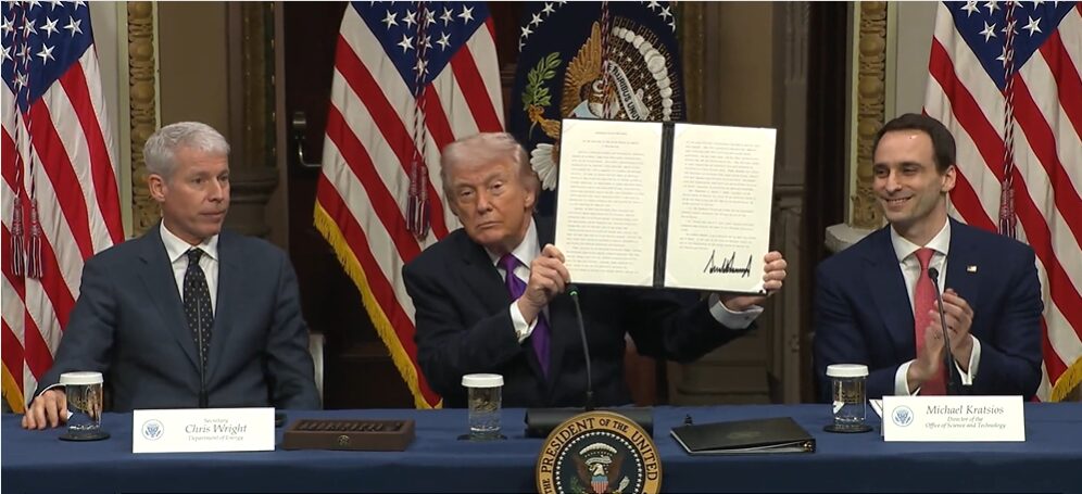 The administration has also promoted expanded domestic energy production through executive actions, including efforts to streamline permitting, expand nuclear capacity for AI applications, and strengthen the national grid. This is part of a broader strategy to maintain U.S. technological and energy competitiveness.