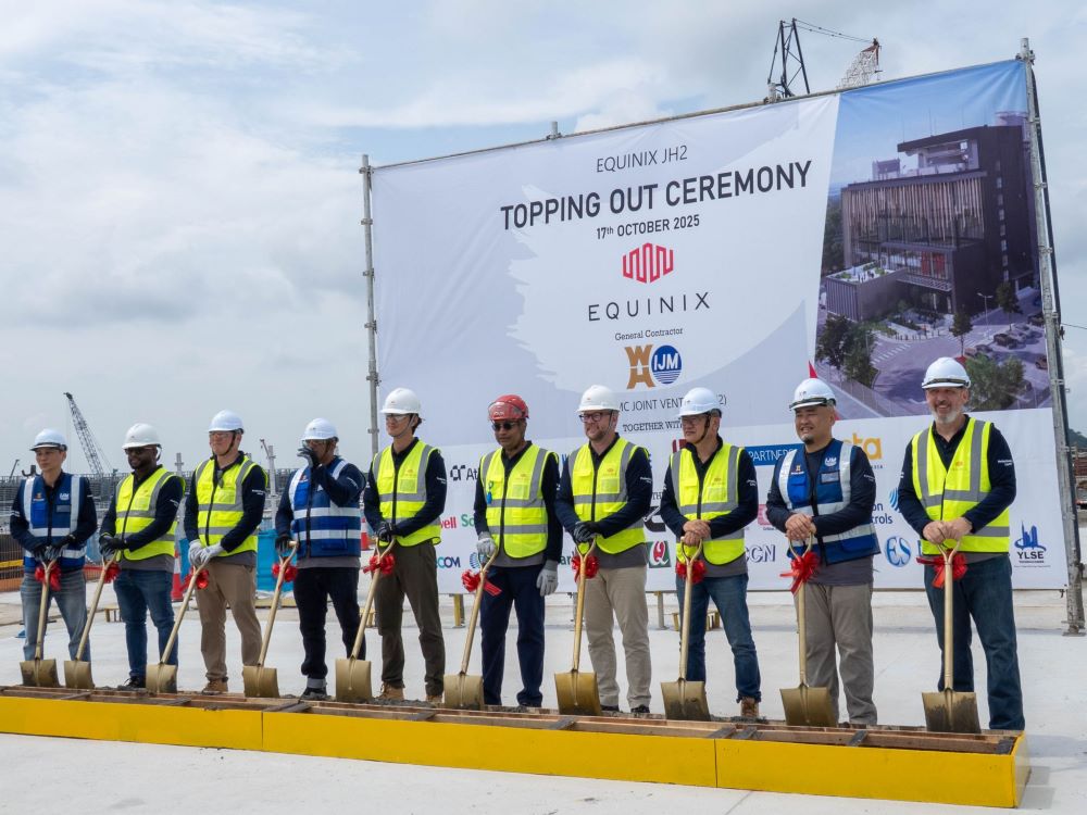 Global colocation specialist Equinix has recently topped out its second data center in Johor, JH2, according to its senior director of IBX Operations, Singapore, Malaysia & Indonesia, Gavin O’Reilly in his Linkedin post. Phase 1 of JH2 with 7.2MW capacity is scheduled to be completed by late 2026 or 2027. JH2 is adjacent to JH1, forming a cluster. It will be liquid-cooled for private AI workload, according to a source.