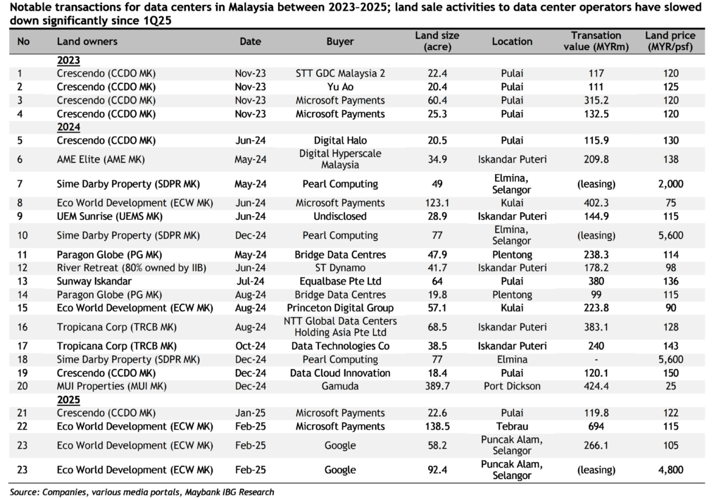 Land sale activities in Malaysia to data center operators have slowed down significantly since 1Q2025, according to Maybank IBG Research’s latest note when giving the 2025 review.