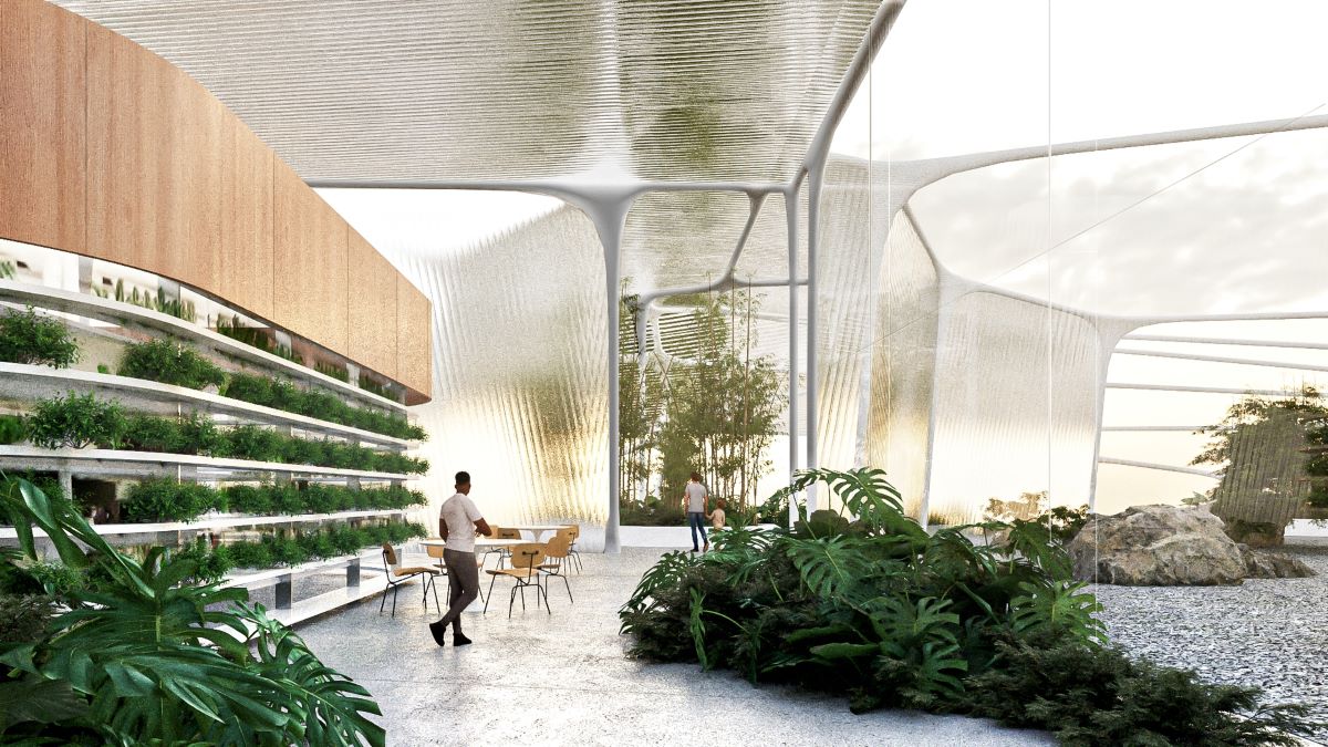 “We were inspired by the potential to embed food resilience, clean energy, and community infrastructure—like an integrated farmers’ market—within the digital backbone of the city,” MacDonald explains the design inspiration for such a data center.